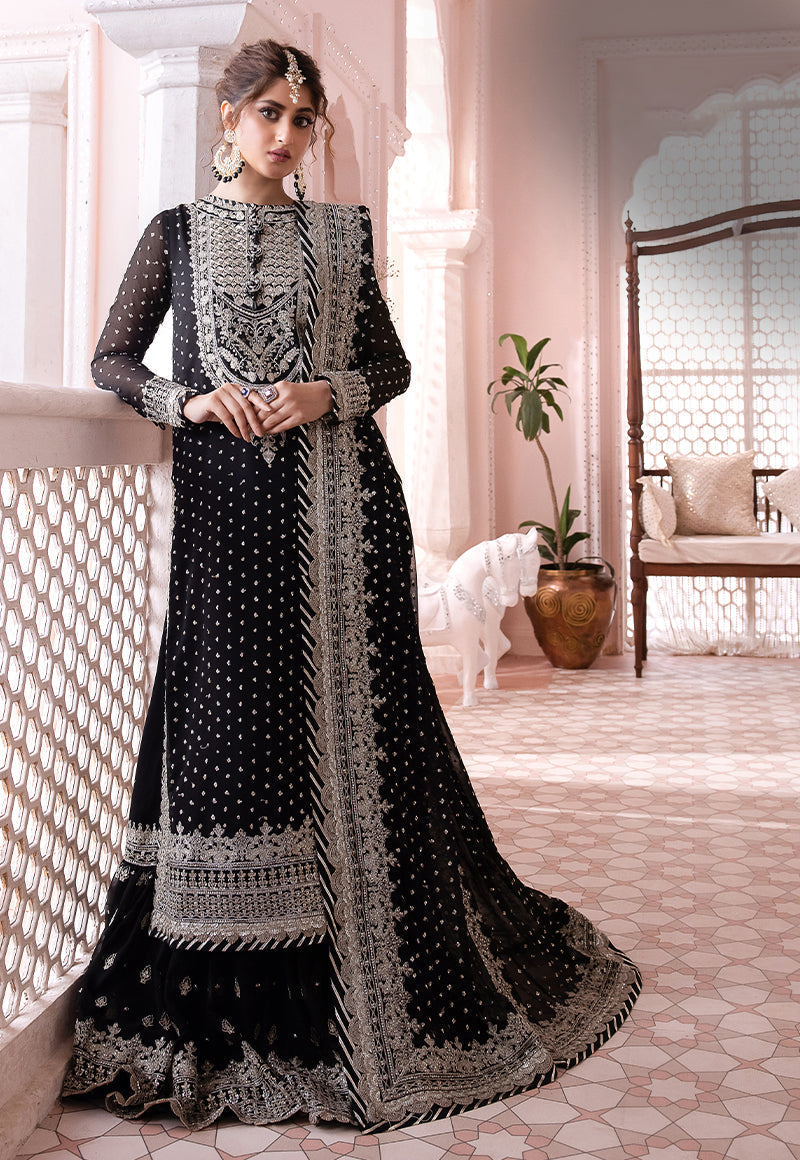 *chiffon fully embroidered spangle work back with heavy embroidered spangle work back bunch & heavy embroidered spangle work back daman border with embroidered spangle work back chaak lace*